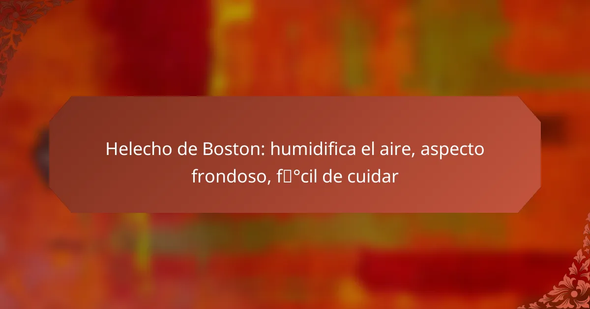 El helecho de Boston es una planta de interior popular conocida por su capacidad para embellecer espacios y mejorar la calidad del aire. Se caracteriza por sus hojas frondosas y su fácil mantenimiento, lo que la convierte en una opción ideal para quienes buscan una planta decorativa y funcional.