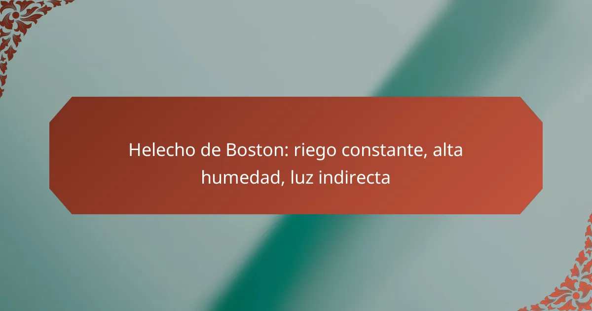 El helecho de Boston es una planta de interior muy apreciada por su frondosidad y su capacidad para embellecer cualquier espacio. Para mantener su salud, es esencial un riego constante que mantenga el sustrato ligeramente húmedo, así como condiciones de alta humedad entre el 60% y el 80%. Además, esta planta prospera con luz indirecta, lo que la convierte en una opción ideal para interiores.
