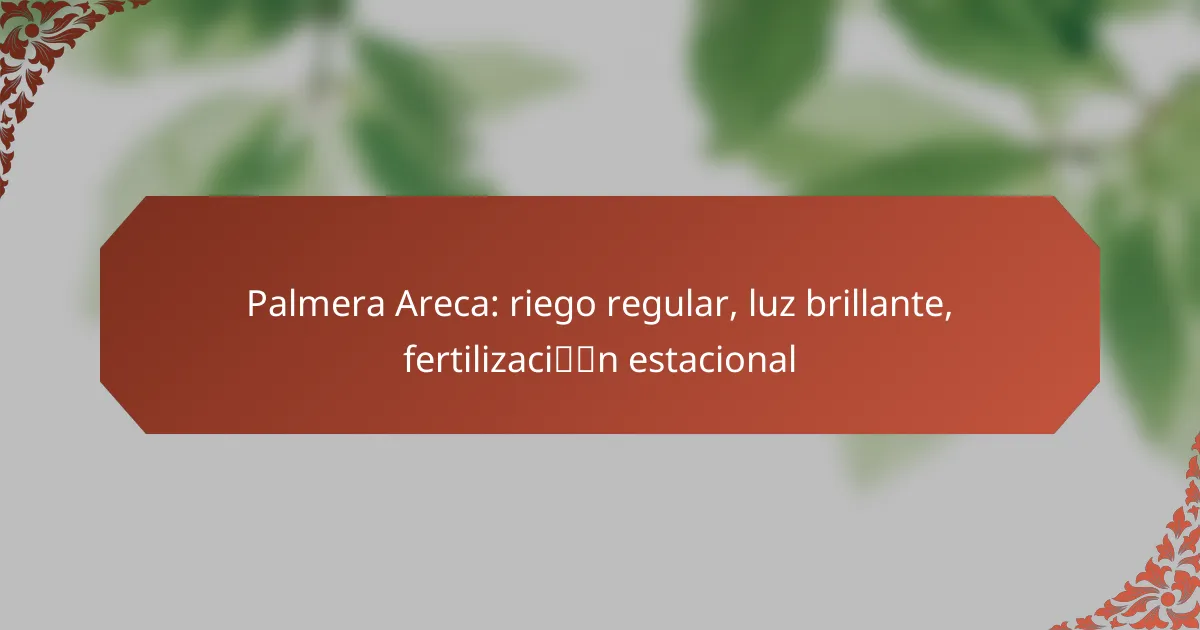 La Palmera Areca requiere cuidados específicos para prosperar, incluyendo un riego regular, luz brillante y fertilización estacional. Estos elementos son esenciales para mantener su salud y belleza a lo largo del tiempo.